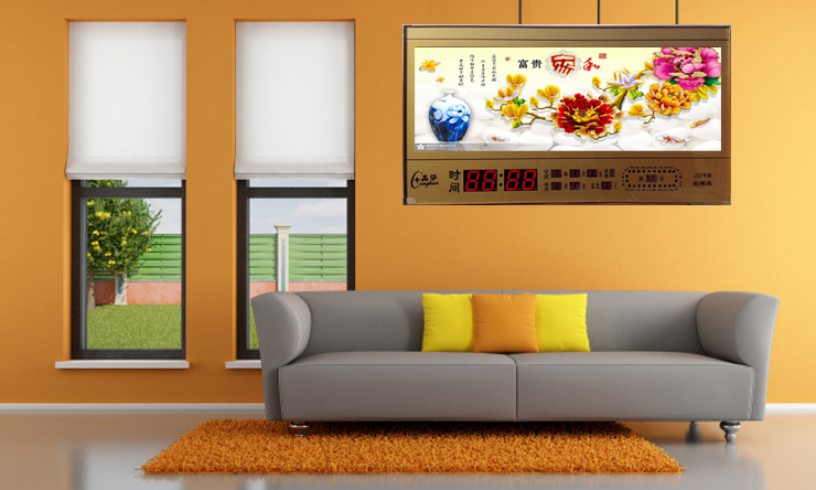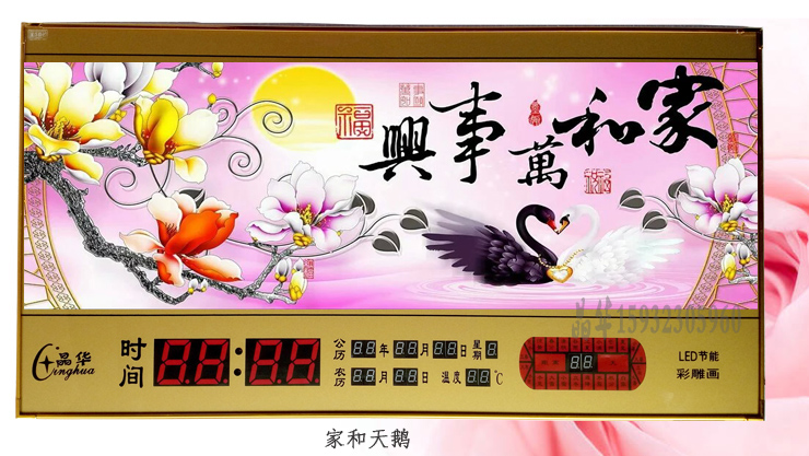 新房客廳裝飾日歷掛鐘,家和風(fēng)景萬(wàn)年歷,超薄七彩燈光更漂亮